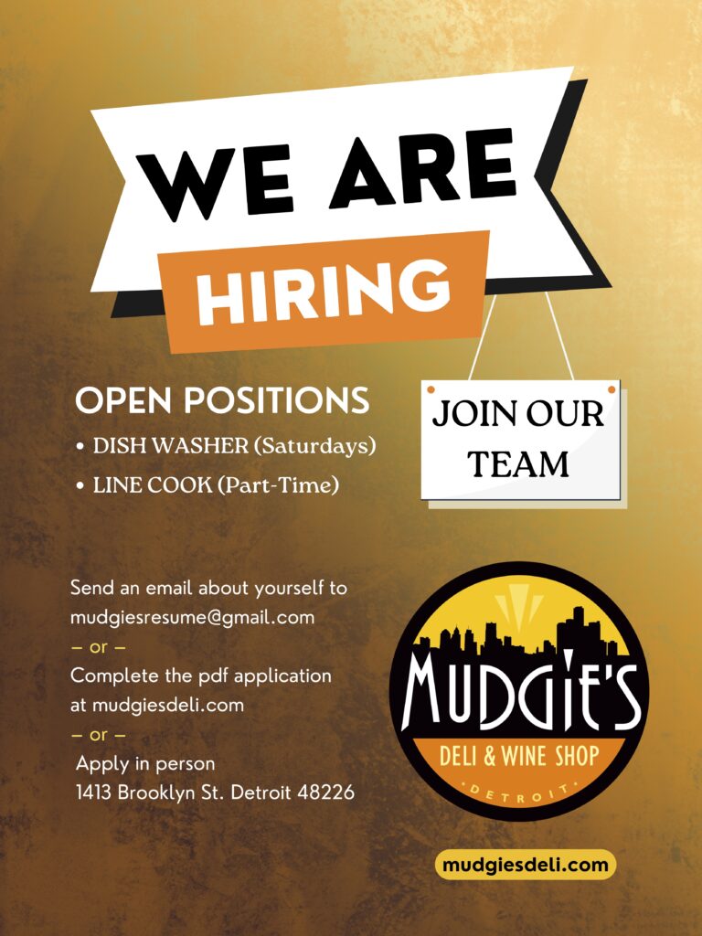 Welcome to Mudgie’s Deli and Wine Shop in Corktown Detroit, founded by Greg Mudge in 2008.